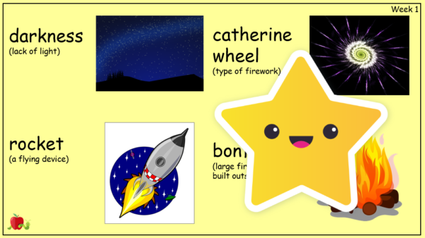 Whole Class Reading resources and planning for Year 1 in a zip file based on Irene Yates’ ‘Bonfire Night’ poem, from a selection of poems chosen by John Foster in this Special Days Poems book. This unit focuses on retrieval and visualisation skills.